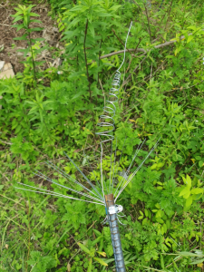 Recently, I acquired some 4-meter steel bars to install in my garden. To enhance the capture of atmospheric electric charges, I adorned the steel bar with steel wire spikes, which are affixed to the bar using clamps. Additionally, a coiled copper wire is attached, as it is believed that copper wires serve as effective conductors for capturing atmospheric charges.
